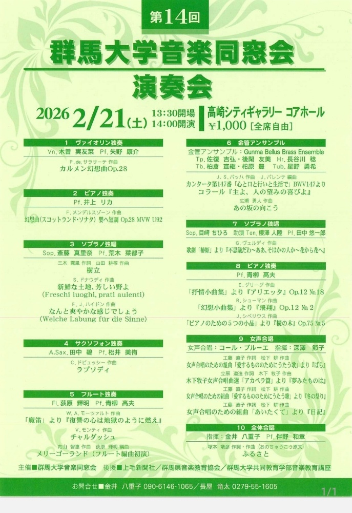 代表のK氏の声掛けのもと、集まった20代から60代の6名の金管奏者で成り立つ。2022(R04)年9月結成。全員がグンマー出身であるがさいたま市在住と新潟県在住者もいる。練習時は二名がはるか遠くから楽器を持って駆けつけてくれるのである。さらに全員が音大または教育大の管楽器専攻であり、中にはアンサンブルやソロのコンクール入賞者もいる。今までに、県内中学校吹奏楽部での楽器別講習会、ミニコンサートを実施(3回)前橋市内楽器店でのミニコンサートを実施(3回)。2025年1月第一回演奏会を開催。